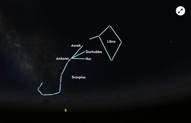 우리 은하의 중심으로 방향이 뻗어있습니다. 그 '증기'는 우리 은하에 이름을 부여한 은하계 빛에 함께 혼합된 수많은 별들의 빛입니다. 이 별들은 밤이 깊어갈 때 전갈자리 바로 뒤에 따라갑니다. 전갈 한 마리가 뛰어다니면 맹렬한 차주전자처럼 소리를 지르며 하늘을 가로지릅니다.