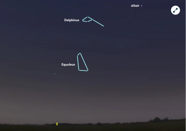돌고래자리를 처음 관측을 하면 작고 희미하지만, 돌고래의 주요 별성은 삼각형 안에 있는 다른 희미한 별들 사이에서 확실히 눈에 띕니다.
