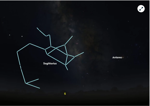 궁수 별의 대부분은 희미하고 뚜렷하지 않지만, 그것의 가장 밝은 별들은 "찻주전자" 별성을 형성하기 위해 함께 모입니다. 8월에, 밤이 조금 길어지기 시작할 때, 주전자의 주둥이에서 증기가 뿜어져 나오는 것처럼 보이는 것을 볼 수 있다고 합니다.